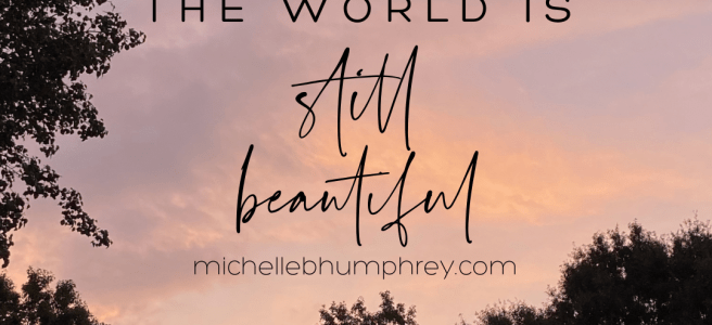 I’m popping in here after all this time, after all we’ve been through, to acknowledge the ugliness and still proclaim the opposite. I want to say—no, I want to declare, to yell–that the world God has given us is profoundly beautiful. Still beautiful, still worth something. Yes, it is fallen and ugly and sad, but the world and its people remain worthy of redemption in God’s eyes, so shouldn’t we also look for the goodness in it?